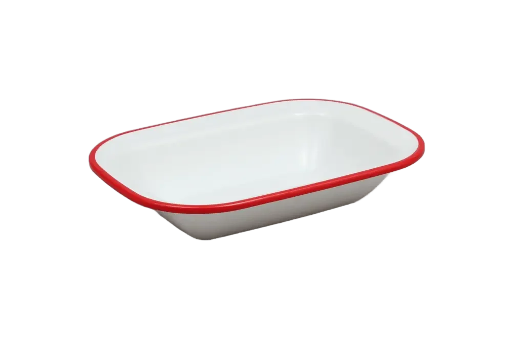כלי הגשה מלבני דמוי אמייל 14.5*20 לבן פס אדום מלמין***2213084