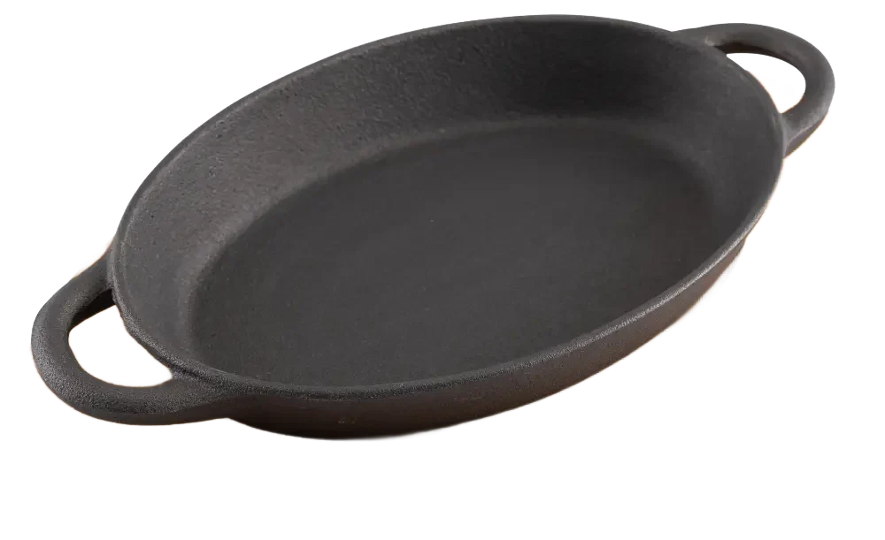 מחבת אובלית יציקת ברזל 26X18 ס"מ תחתית במבוק***10630973
