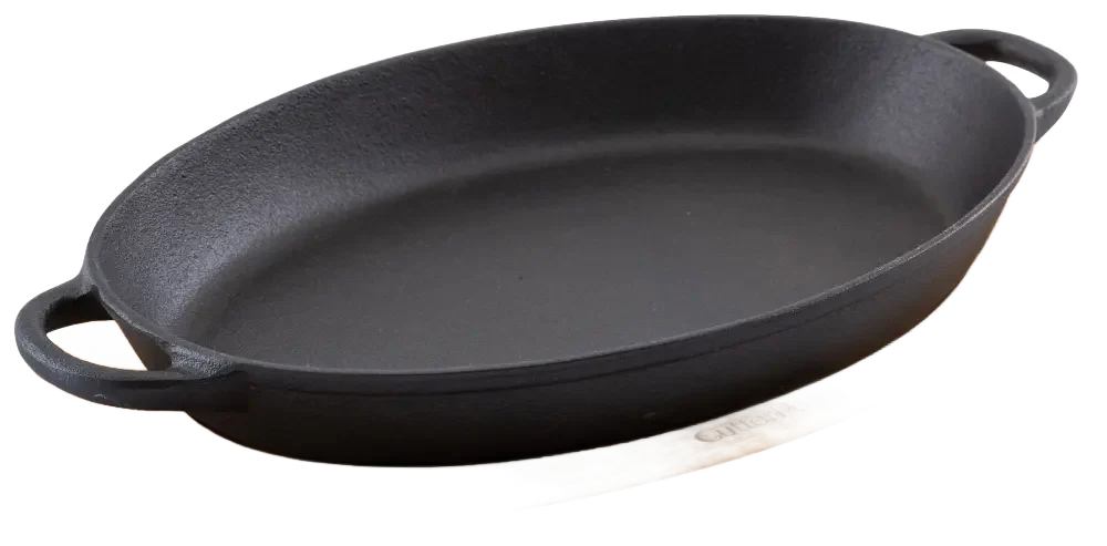 מחבת יציקת ברזל 36X25 אובלי תחתית במבוק***10630976