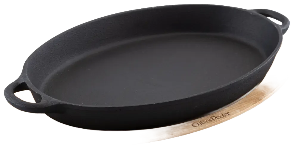 מחבת יציקת ברזל 40X28 אובלי תחתית במבוק***10630978