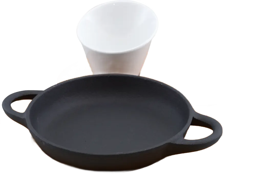 מחבת עגולה יציקת ברזל עם תוספות תחתית במבוק 21 ס'מ***10630913