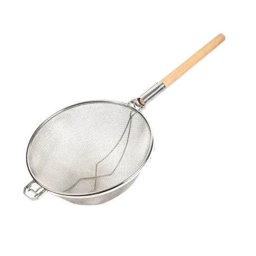 מסננת רשת כפולה נירוסטה מחוזקת 35 ס"מ ידית עץ***99135