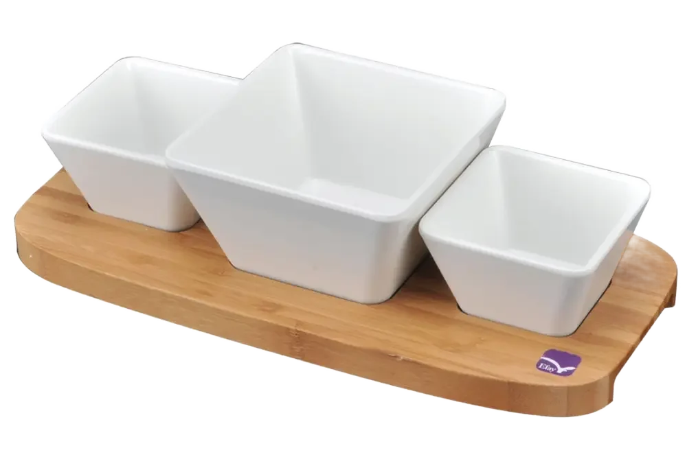 כמות של סט הגשה עץ במבוק 33X15 ו-3 קערות***601001