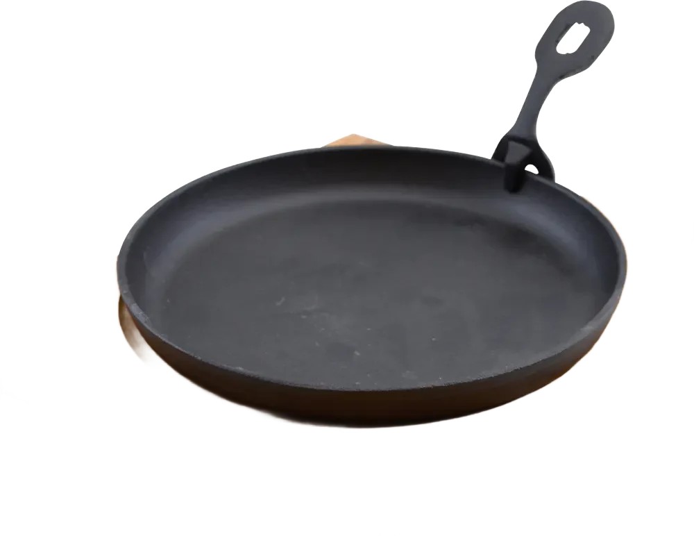 צלחת יציקת ברזל עם תחתית עץ 22 ס'מ***10630912
