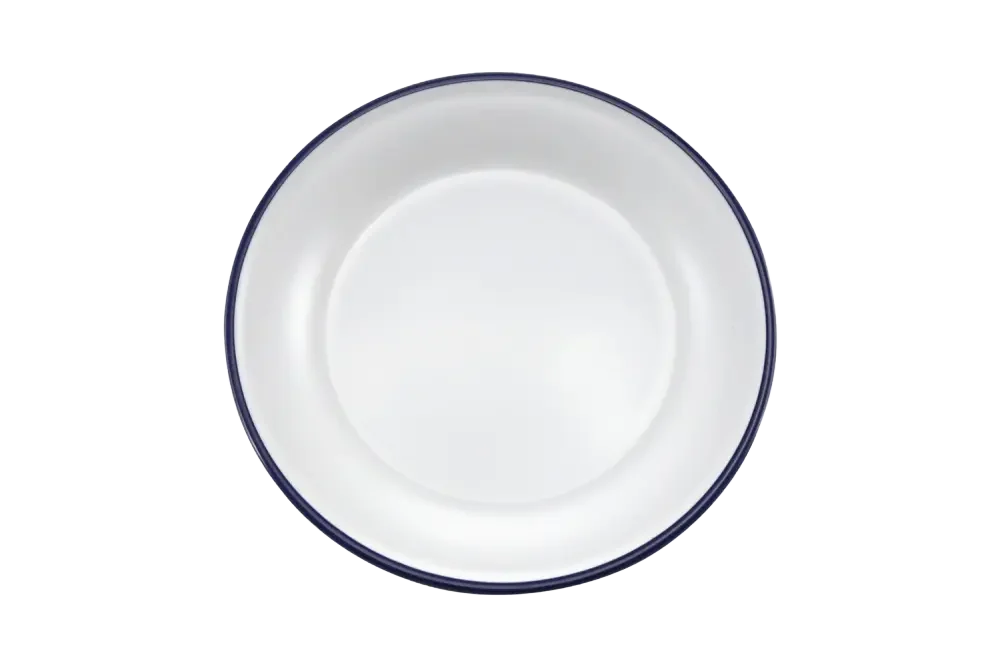 / צלחת 22 ס"מ דמוי אמייל לבן פס כחול מלמין***2207091