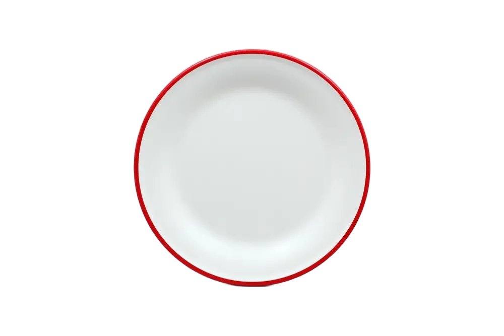 צלחת 23 ס"מ דמוי אמייל לבן פס אדום מלמין***2207094