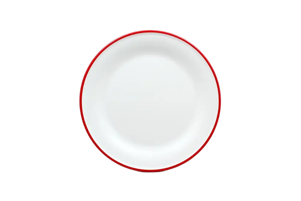 צלחת 27 ס"מ דמוי אמייל לבן פס אדום מלמין***2206114
