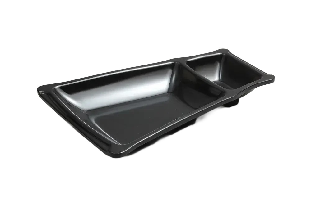 כלי הגשה טרפז עם רוטב קמומה 23.8X15.5X3.5 מלמין שחור***122009b
