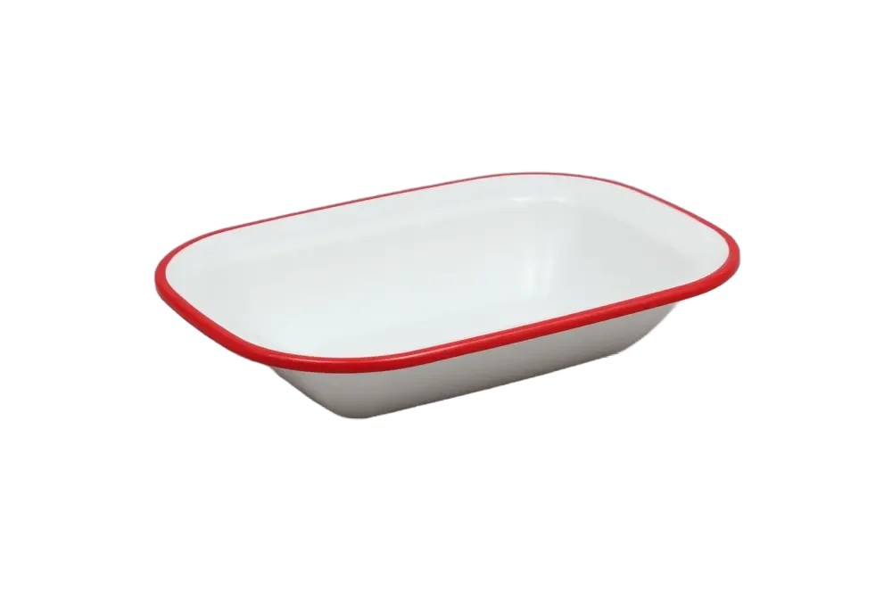כלי הגשה מלבני דמוי אמייל 14.5*20 לבן פס אדום מלמין***2213084