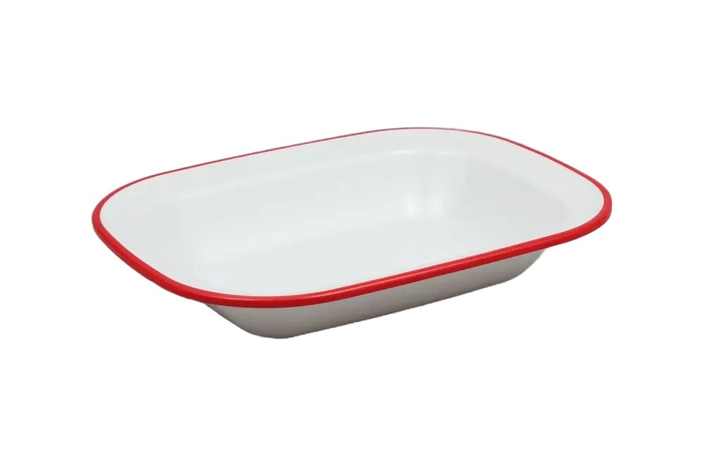 / כלי הגשה מלבני דמוי אמייל 17.6*23 לבן פס אדום מלמין***2212094