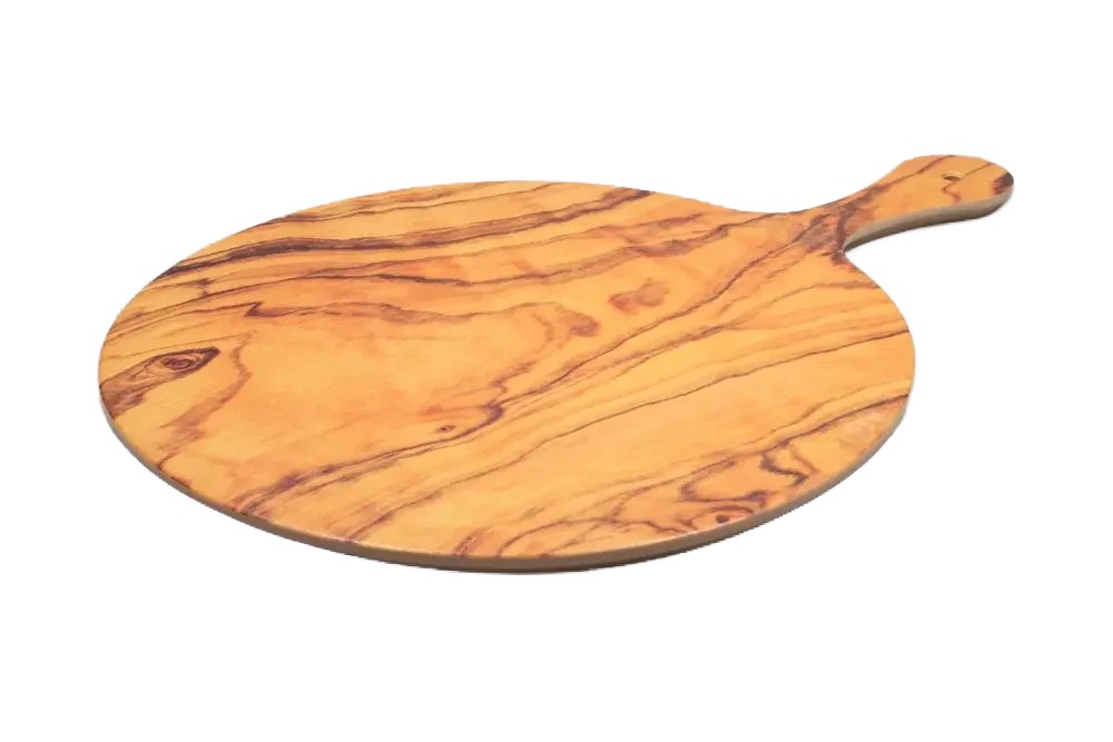 לוח דמוי עץ בהיר עגול 38 ס"מ + ידית מלמין***406121ab