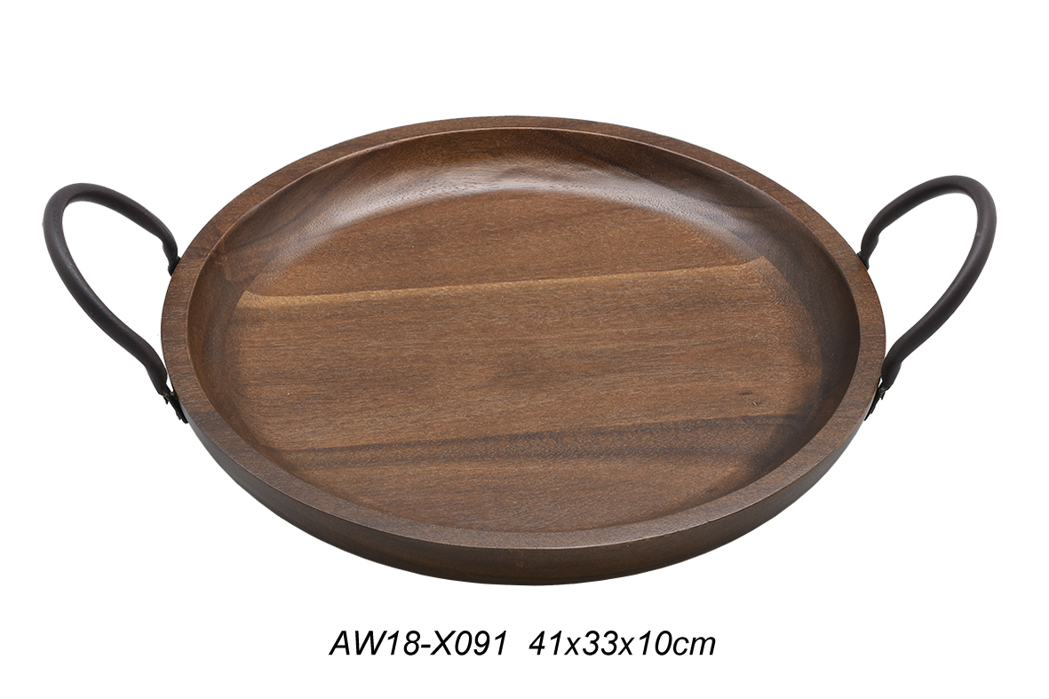 / מגש עץ אובלי 41X33 ס"מ +ידיות אוזן