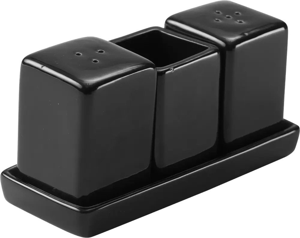 / סט מלח, פלפל קיסמים מרובע פורצלן שחור 11002750