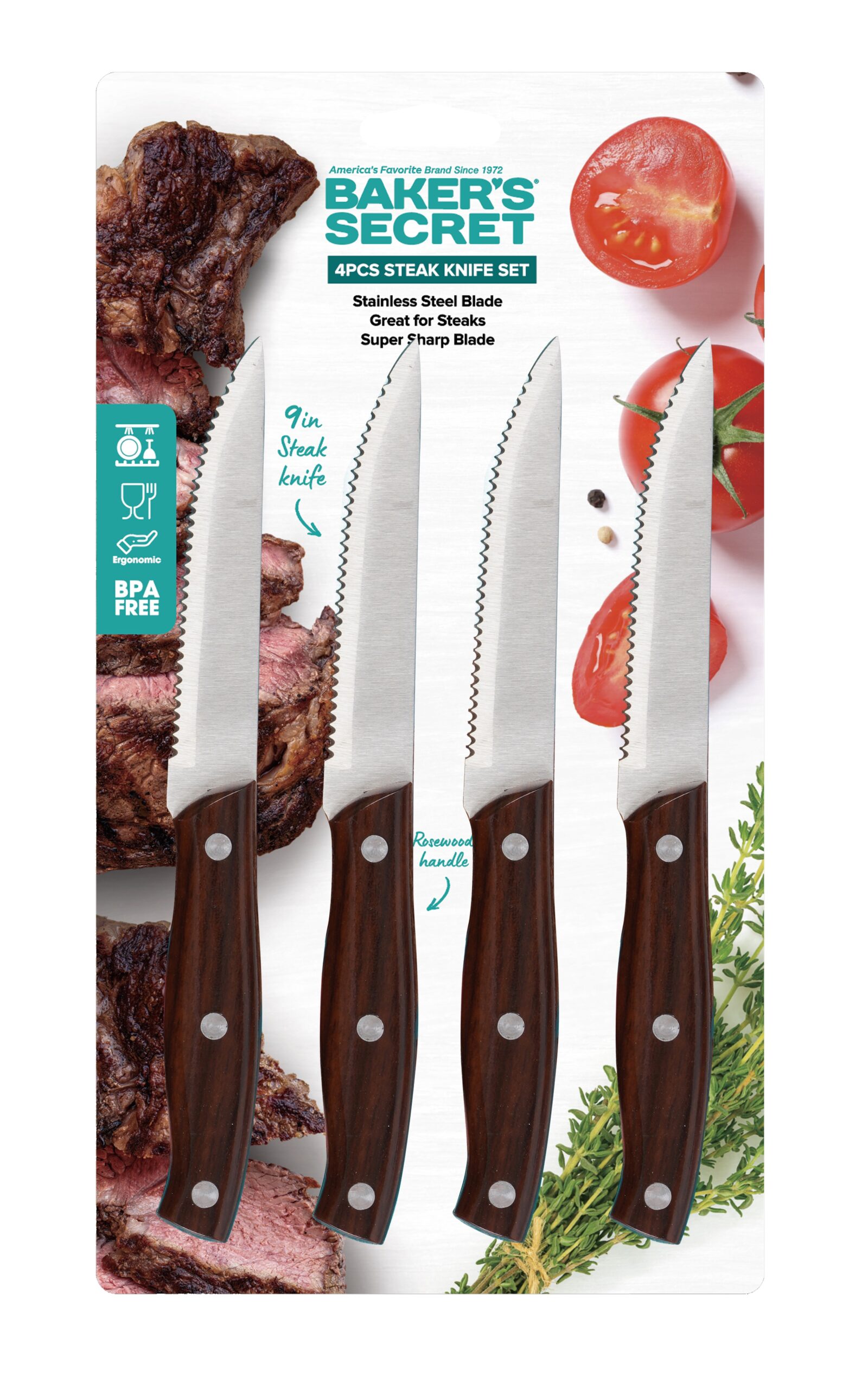 / סט 4 סכיני סטייק שחור 22 ס"מ מבית Baker's Secret