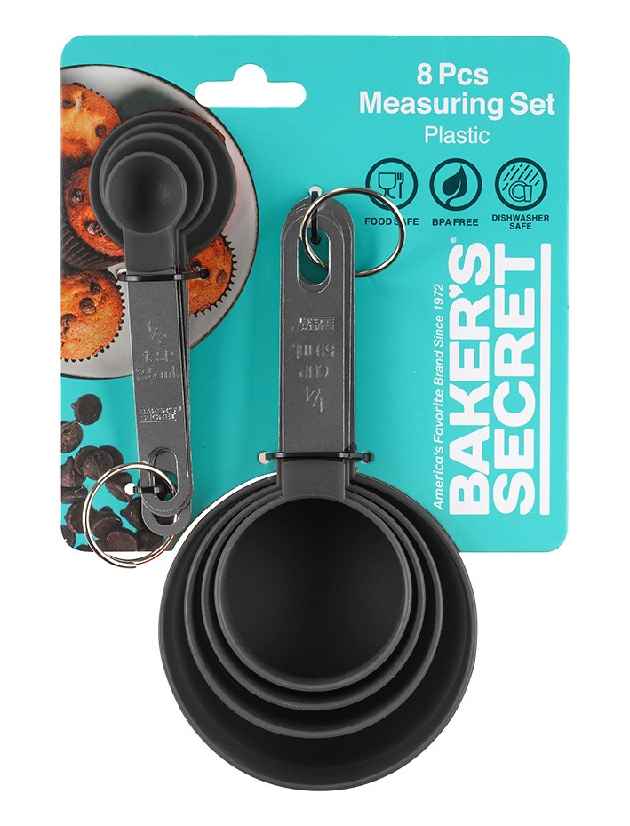 כמות של סט 8 כוסות וכפיות מדידה ידית נירוסטה מביתBaker secret (חדש)