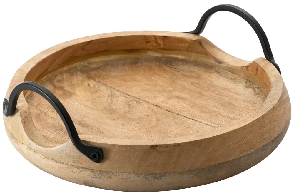 פלטה עץ עגול עם ידיות מתכת 25X10 ס'מ***17602124