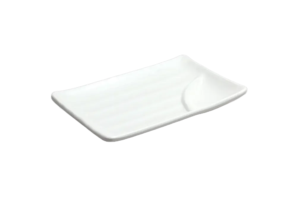 פלטת הגשה מלבנית עם רוטב 19.8X12.5X2.6 קמומה מלמין לבן***112908