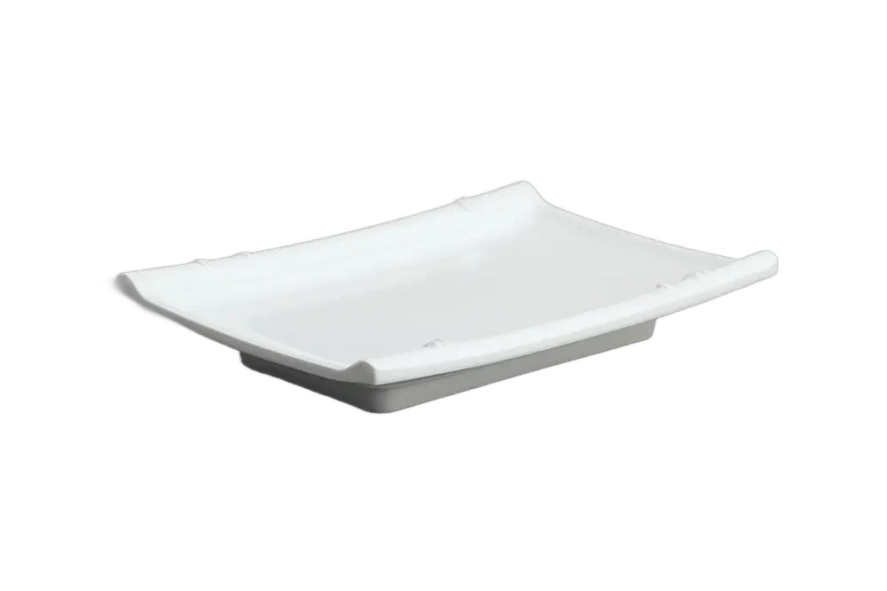 צלחת במבוק לסושי 11.5X17 מלמין לבן***123607
