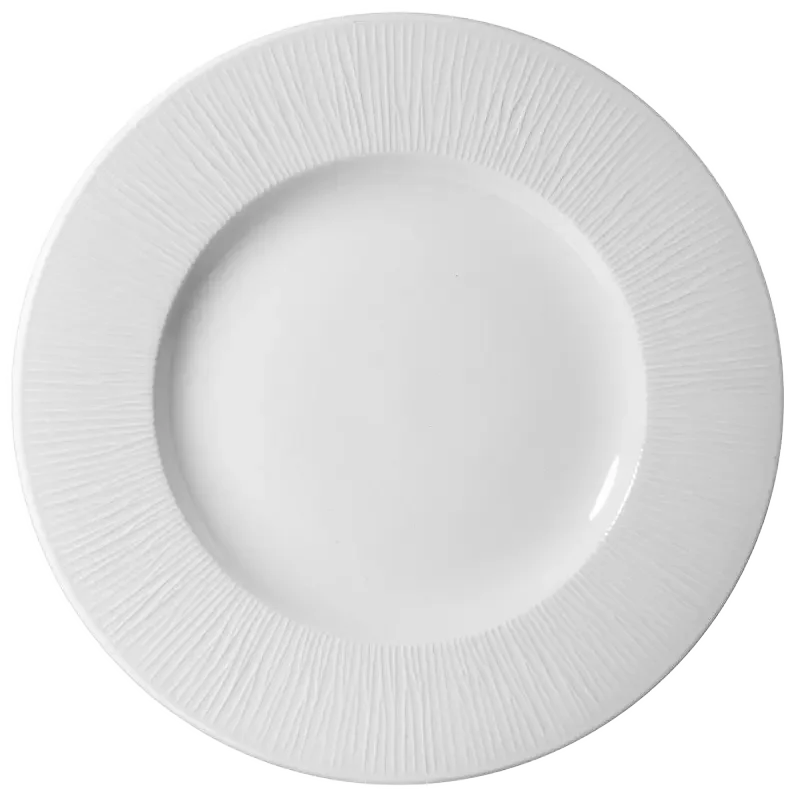 עם קוטר 30.5 ס"מ ושוליים רחבים, צלחת הפורצלן הזו עוצבה להדגשת כל מנה והגשה מקצועית. חומר הפורצלן העמיד מבטיח התאמה לשימוש יומיומי במטבח הביתי או במסעדות, והיא עמידה בפני שריטות. צלחת הפורצלן במבו לבן של CHURCHILL, מושלמת למנות עיקריות או סלטים, תשדרג כל ארוחה ותשמור על איכותה לאורך זמן.