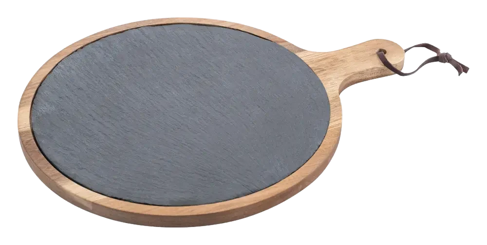 קרש עגול עץ עם אבן צפחה וידית 41X31 ס"מ