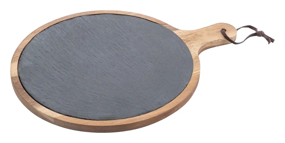 / קרש עגול עץ עם אבן צפחה וידית 41X31 ס"מ